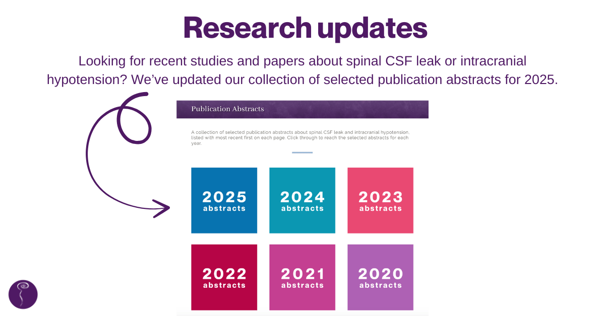 Did you know we post a selection of studies on spinal CSF leak each year? In 2025, we have already added more than 50 abstracts to the Publication Abstracts page on our website.