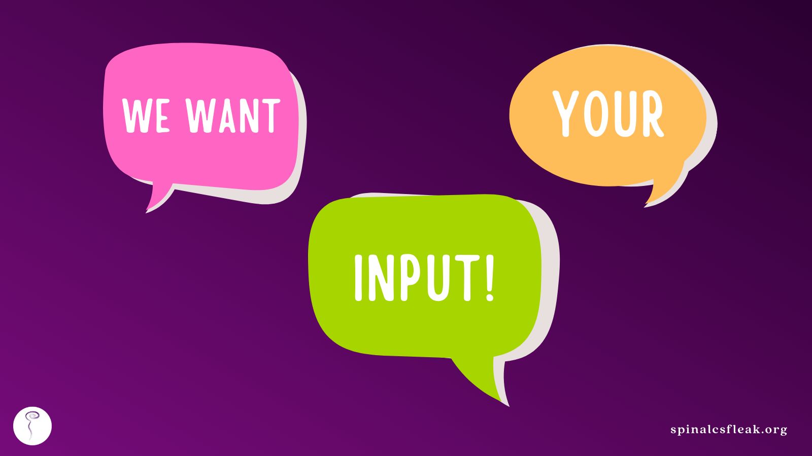 If you are a spinal CSF leak patient, whether in the United States or internationally, we invite you to share your feedback and submit survey questions using this form:
